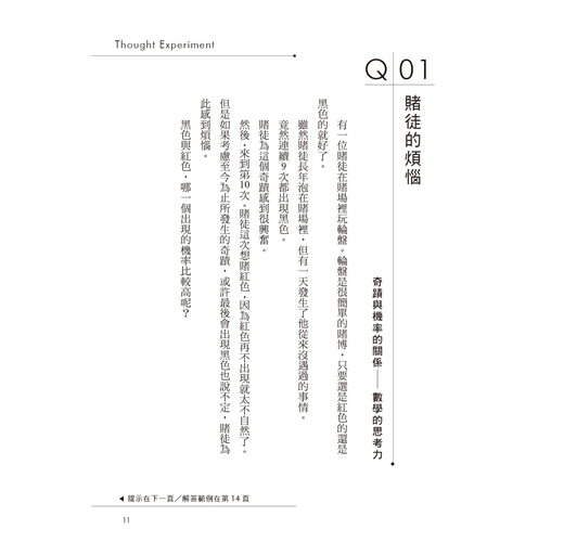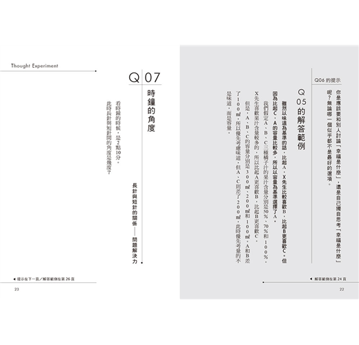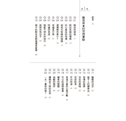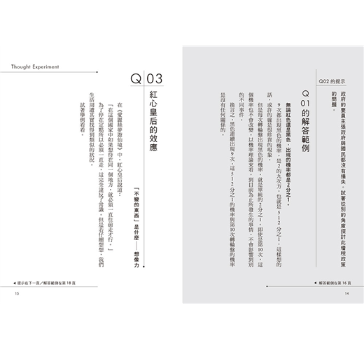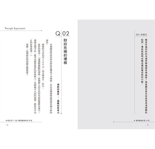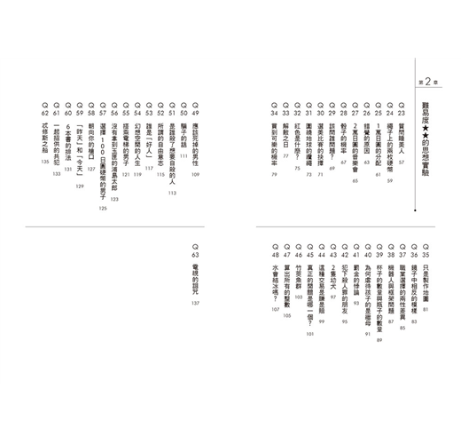 每篇都是短篇獨立思考的題目,不論再忙碌也能輕鬆閱讀,在通勤時輕鬆享受「思考實驗」的樂趣。