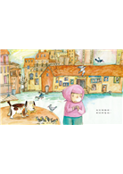 狗狗對撿石頭的毛毛很感興趣,一路好奇地跟在毛毛後面,他們一前一後走了一陣子,穿梭在城鎮的大街小巷。當毛毛撿完石頭轉身回頭時,突然發現狗狗就站在自己面前,嚇了好大一跳!