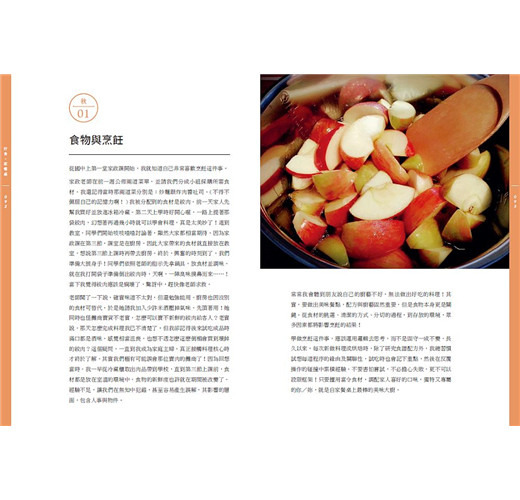 在充滿考驗的每一天,也許你正為生活勞累奔波,也許你期待緊密人際關係。飲食,對內是一種自我療癒,對外則是另種自我表現,透過用餐時的交流,可以達到飽腹也能拉近人們之間的距離。希望藉由此書,讓我們一起親做料理創造美味,共同感受生活與飲食的自在快樂。