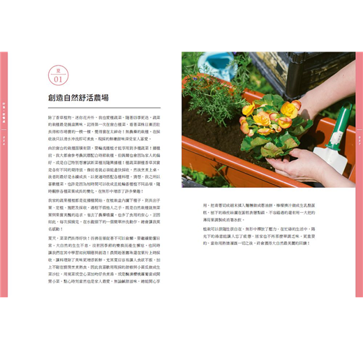 除了適合家中的香草與蔬果植栽介紹,本書收錄日常的美味中菜飲食筆記,療癒的烘焙與甜品更是享受生活不可或缺,適合日日獨享或與親朋好友聚會的季節提案。
