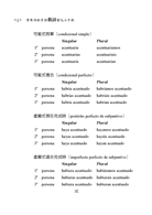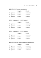 人稱形式:動詞分別在陳述式、虛擬式、命令式、可能式第一人稱(1a singular我、1a plural我們)、第二人稱...