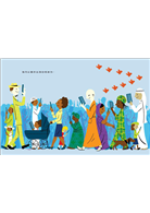 ◎作者在牛皮紙上使用印度墨水,創造令人難忘的滿版畫面。其中有個畫面描繪了不同種族的人們,不分老少全都邊走邊看著他們手上的平板電腦,文字上寫著「我可以跟你去到任何地方」,是的,故事在我們的生活中無處不在,有人類的地方就會有文字,就會有故事。無論故事或閱讀的樣貌如何隨著科技改變,但文字的力量永遠能撼動人心。這是一本介紹故事、書籍和閱讀的絕佳圖畫書,沒有文化、國界和年齡的界限。──科克斯書評