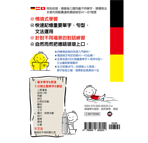 筆者3人受到導入日本的ÖSD(奧地利政府公認德語能力檢定)帶動,痛感德語學習者在準備考試時,學習基本語彙的單字集之必要性,因此提筆寫成這本書。由於本書是根據各種場面分門別類,網羅各種必要、重要的單字,不僅能成為學習初級德語的輔助教材,也能廣泛活用,成為ÖSD A1-A2以及歌德學院A1-A2等初級檢定考試的準備教材。