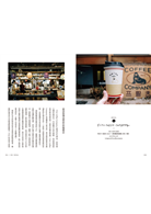 在紐約ACE HOTEL開放式大廳享用Stumptown的卡布奇諾,當下的氣氛,讓他隨手在筆記本中畫下了咖啡師。在柏林Bonanza Coffee Roasters,店家播放的音樂好品味,讓他跟旅伴忍不住跟店家詢問了歌單,體悟到旅行中可以遇到的美好。而在波特蘭Heart Coffee Roasters的春日下午,灑進落地窗的美好陽光,那個深受感動的瞬間,他拿起店家的外帶白紙杯,畫下推薦了香草拿鐵的大鬍子咖啡師。
