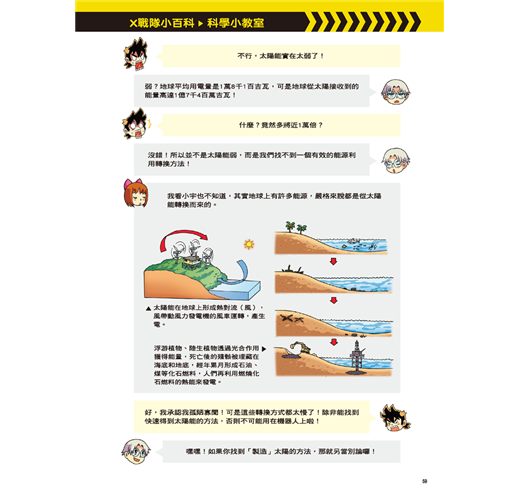 圖像式漫畫結合生動可愛的人物和驚險刺激的故事編排,加深小朋友對於科學知識的理解和如何運用在生活中,激發他們對自然與科學的好奇心。而書中團隊合作的故事,則可培養小讀者們建立勇於挑戰與冒險的精神,藉此養成體貼他人的個性。