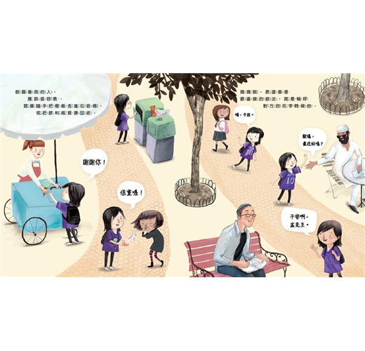 不論是全球,或者只是孩子居住的小城鎮,人與人之間的善良,就是書中提倡的重要價值……也告訴孩子許多「做得到」的善良行為。