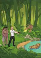 回到岸上,我開始觀察周圍的地形,想找個合適的住處和貯藏東西的地方。正好在離我不到一英里遠的地方有一座小山,於是我拿著一支鳥槍和一支手槍,費了九牛二虎之力爬到了山頂。從山頂上放眼望去,看不見大片陸地,只有十五 海里外的地方,有兩個更小的島嶼。原來這是一座海島。而且,島上荒無人煙,只有野獸和飛禽出沒。