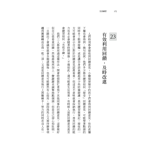 鮮少有人將「練習」如此完美詮釋與示範,原來最簡單的練習要能做到極致才是成功捷徑。如果你也渴望進步,無論你從事什麼行業,是領導者還是員工,都應該擁有這本書。