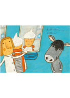 有喜歡用泡泡在頭頂做造型的小男孩和小驢子,