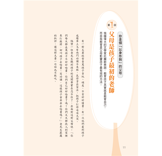 第1招 你是「以身作則」的父母:父母是孩子最初的老師