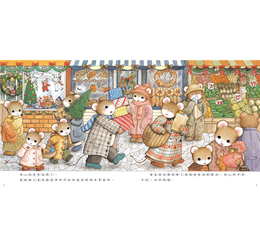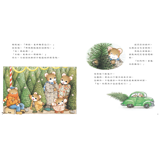 提摩西和莎拉買了一棵杉樹回家,回到家把杉樹裝飾得漂漂亮亮的,並烤了很多餅乾。接著就要出門了。爺爺奶奶都等不及提摩西和莎拉的到來。今天是特別的日子,肯定會是一個美好的夜晚。
