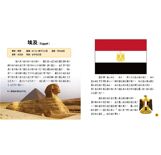 4. 介紹各國的自然和人文景觀,以及國旗、國徽的主要特徵,內容淺顯易懂,孩子可輕鬆學習。