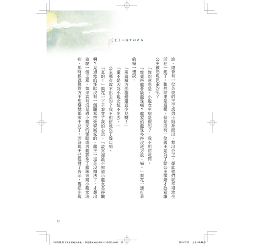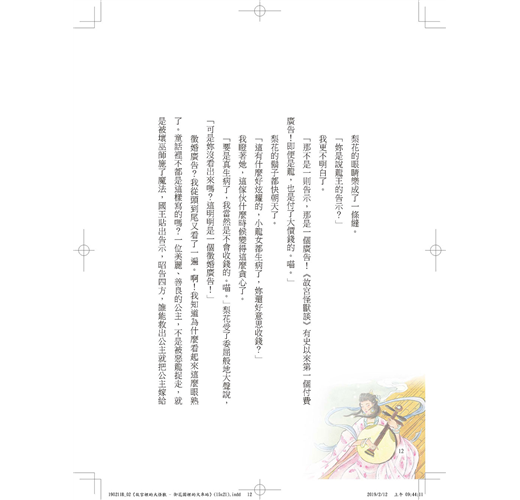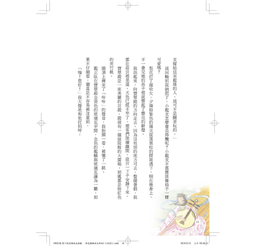 本書以小女孩奇特的經歷和視野,將故宮蘊藏的中國神話和傳統文化展現出來。宮殿中實際存在的怪獸和神仙肖像雕飾,在書中富想像力與新奇大膽描繪下得到了活潑的形象與生命力,配上童趣的畫風與描述,巧妙的帶領孩子深入挖掘眾多傳統故事,也成功滿足了孩子愛探索冒險的心。