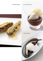從刀工開始,到燙、煮、烤、炸等等火候的控制,經過冷卻、凝固等等變化後,同樣的食材也會呈現出不一樣的味道、口感,再搭配盛盤時不同的溫度,又能再作出更多變化。此外,裝飾方法、擺盤、容器的形狀/顏色/圖案有無,都能讓同樣的甜點展現不同的風情。本書也包含特別以大分量製作,而得以切開分食的甜點,和可以單獨裝飾的小型甜點,風格截然不同,十分有趣。