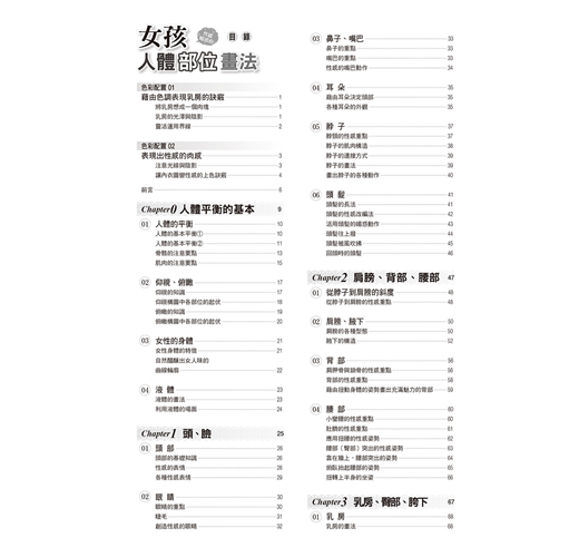 不僅如此,為了畫出更有水準的女性圖畫,針對姿勢、重力造成的肌肉動作、增添角色魅力的重點,也會依每種姿勢加以解說。閱讀本書掌握基本,就能自由自在地畫出不拘形式的魅力姿勢。
