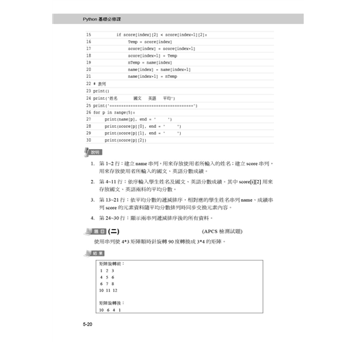 內文講解融入MTA Python與APCS觀念題與解題技巧,同時書末整理MTA Python程式設計核心能力國際認證(MTA 98-381 Introduction to Programming Using Python)模擬試題,讓初學者程式設計訓練更加札實,同時也是教師訓練學生考取MTA Python國際認證的最佳教材。