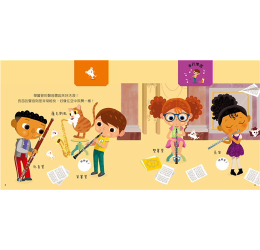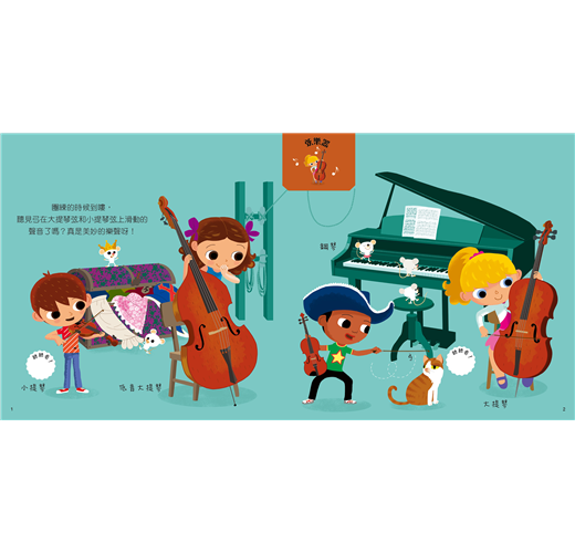 插畫有自成一格的童趣,每個人物享受彈奏樂器的快樂模樣,吸引孩子目光。