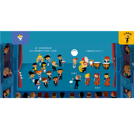 書中為表演而努力練習的樂手們享受彈奏樂器的快樂模樣,扭轉普羅大眾對古典音樂艱澀難懂的刻板印象,藉由這本有趣又容易瞭解的音樂書陪伴孩子欣賞閱讀。