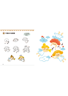 孩子可以學到的不只是畫出單一的人物、動物、飾品…等圖案,書中還提供許多結合場景的完整圖畫,小朋友可以自然感受構圖與色彩的呈現,進而練習表達與創造出自己的作品。