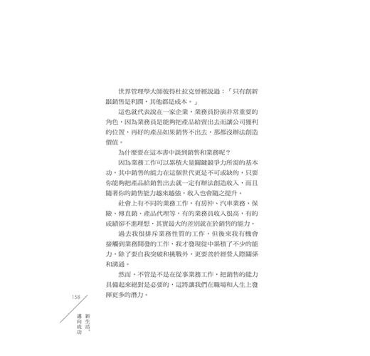 具備了更多不同的能力,像是演說、銷售、溝通等,我也希望你能從本書之中找到一些可以運用的能力,並把它學會後讓你在想成長的方向去做更多的突破。