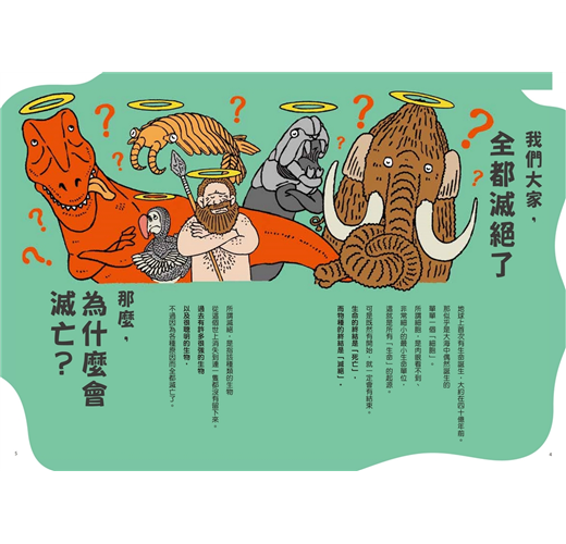 自地球誕生以來,99.9%的生物種類都已經滅絕了,包括榮登孩子人氣王的霸王龍、象徵和平的旅鴿、最受歡迎動畫主角的長毛象……,但這些生物當初為什麼會滅絕,原來真相是: