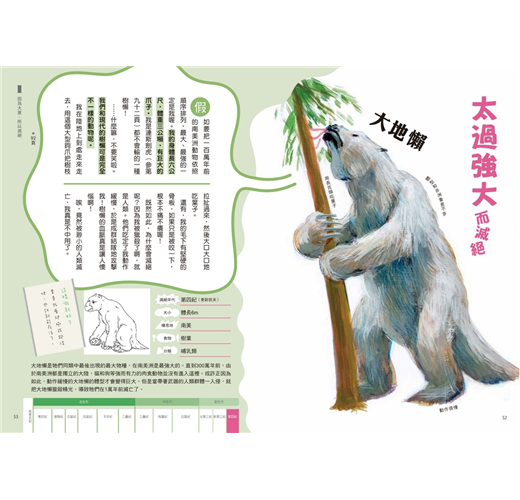 本書最後附有非常特別的「滅絕全紀錄」別冊,可以一邊讀、一邊對照內文,就能讓自己對大自然的消長有全盤的理解。