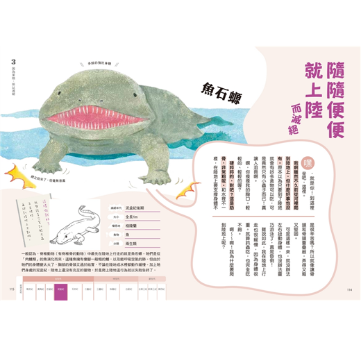 作者用超有趣的口吻,一一描述這些滅絕生物們生活遭遇到的難題,不過可別只有笑,這些看似搞笑的滅絕原因背後都牽涉到嚴肅的生命議題,是一個個關係到演化、地球變遷、環境破壞的複雜故事。
