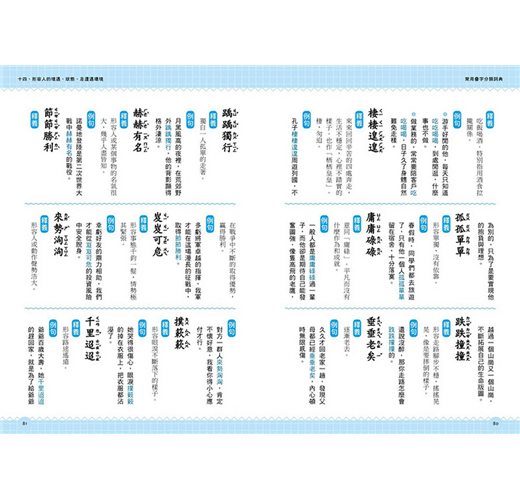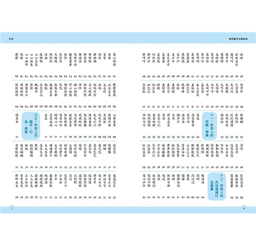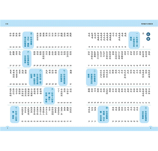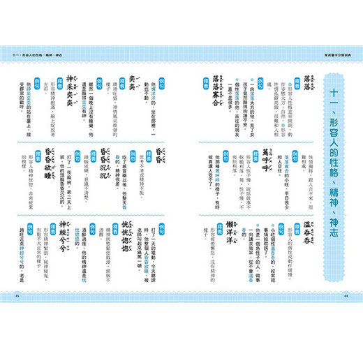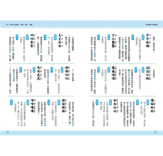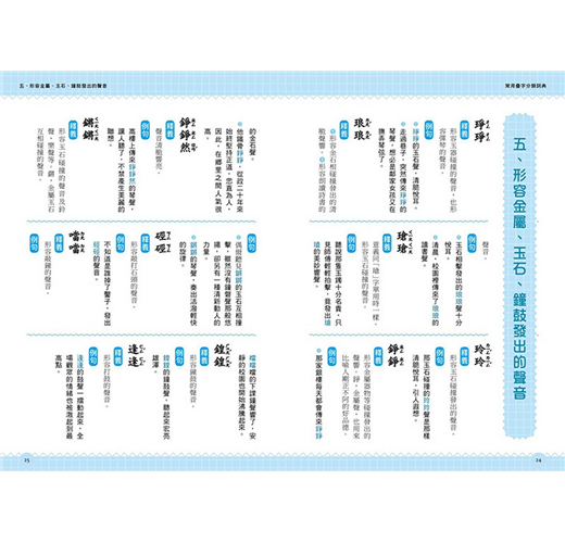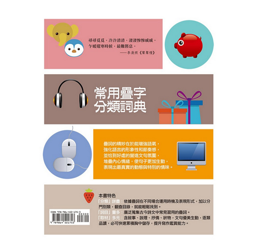 ● 「分類」詳盡:依據疊詞在不同場合運用的時機加以分門別類,翻閱目錄就能輕鬆查找。