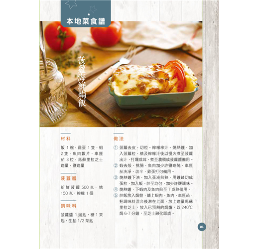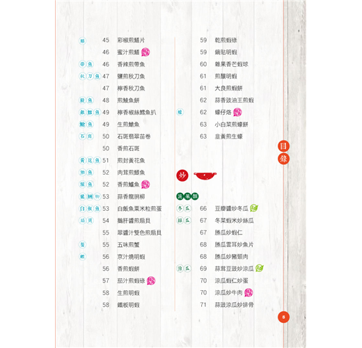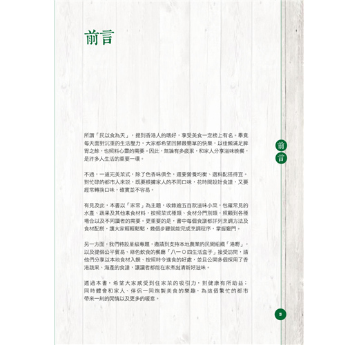 本書以水產、蔬果及其他素食材料為主題,收錄超過500款滋味食譜,無論是煎、炒、煮、炸、蒸、涼拌,做法一樣簡潔明瞭,並附上烹飪貼士,讓大家輕易炮製適合自己的美味菜式。務求一本食譜,滿足你對滋味、簡單、有營的三大要求!