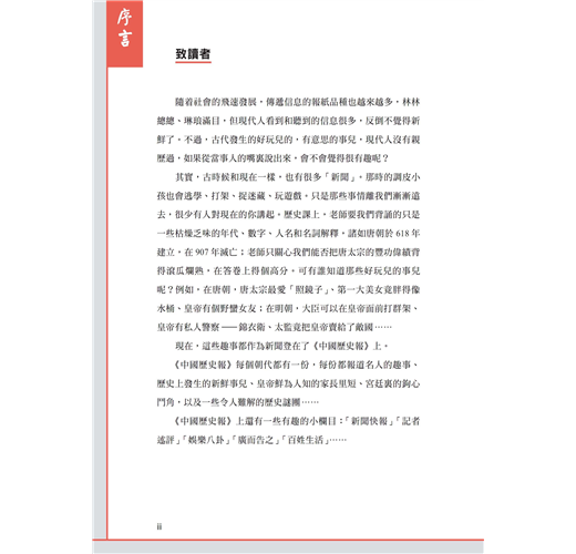 本套書共分八冊,以新聞報紙形式,通俗、流暢又不乏深度地講述中國歷史。書中報道名人的趣事、歷史上發生的新鮮事兒、皇帝鮮為人知的家長里短、宮廷裏的鉤心鬥角,以及一些令人難解的歷史謎團⋯⋯本冊從隋煬帝謀取太子之位,寫到柴榮勵精圖治建立基業。