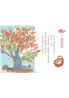 還有、還有,還有一個是秋天才會出現的「柿子精靈」,模樣是個女孩子,穿橙黃色的洋裝,有一張圓圓的臉。她跟小小猴在秋天相逢,做了一季的朋友。她是點頭娃娃許諾給小小猴的好朋友,但是小小猴不知道。