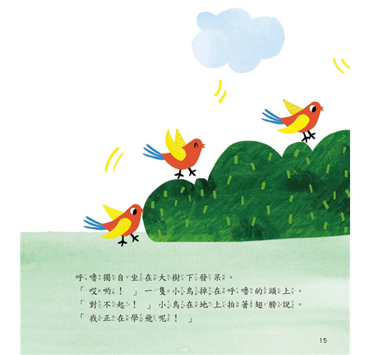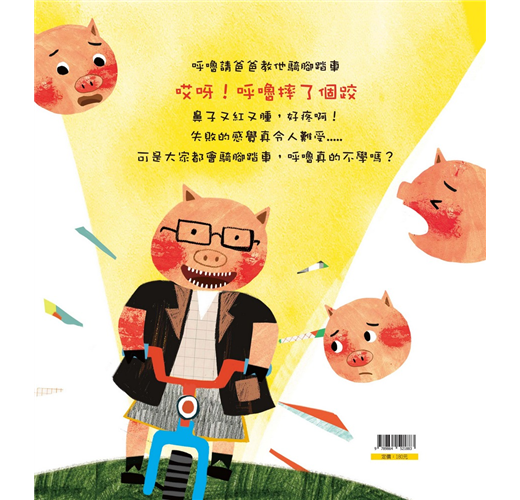 呼嚕請爸爸教他騎腳踏車哎呀!呼嚕摔了個跤鼻子又紅又腫,好疼啊!失敗的感覺真令人難受……可是大家都會騎腳踏車,呼嚕真的不學嗎?