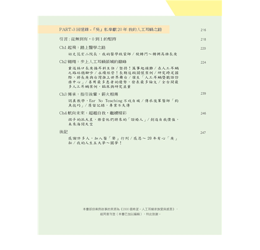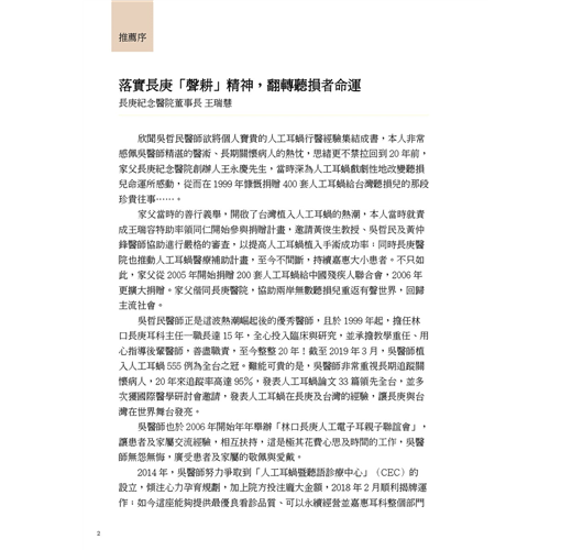 *作者20年的人工耳蝸之路,對後輩具關鍵性啟發,更「醫人醫心」造福大小聽損者。