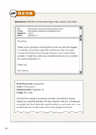 → 閱讀理解中的文章,經常會在描述事件的細節後向閱讀者提出請求。所以若題目是詢問所請求的具體內容,就要在文章的後半部分尋找表達請求的句型,文章沒看完也能拿到分數!