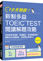 【本書特色】◆ 特別規劃 10 天完整學習計畫,讓考生能按照進度熟悉閱讀理解裡的各大題型、解題攻略及找出關鍵解題線索的方法,快速提升閱讀理解分數!