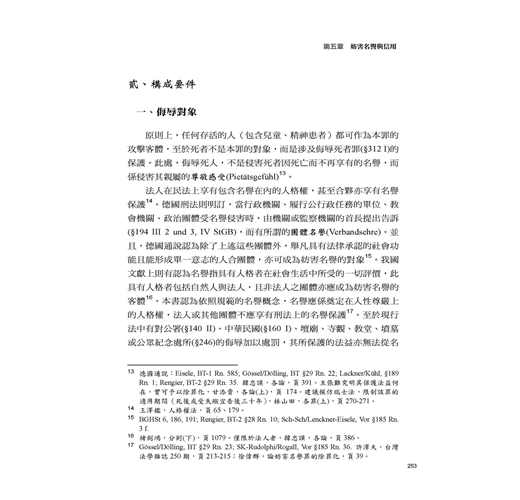 本書的出版,衷心地感謝康士坦茨大學Andreas Popp教授的協助,使筆者得以在暑假中靜心地完成相關工作。成大法律所學生翁英琇、陳家誼、鄭惟容與張櫻馨醫師的校對與閱讀意見,新學林出版社李啟琳先生協助編排出版,同在康士坦茨作客的柯格鐘教授的鼓勵,妻子與岳母對幼子的照顧,無一不是本書完成的重要幫助,在此一併致謝。回想自己求學過程,黃常仁老師多年前在東吳大學課堂的教導,促使筆者走向研究刑法的路;前年逕自參加老師在高雄大學的最後一堂課,眼見其專注的授課神情與充分準備,未提一句課外話語,數十年如一日的教學態度,更讓已為老師的筆者敬佩不已,引為典範。