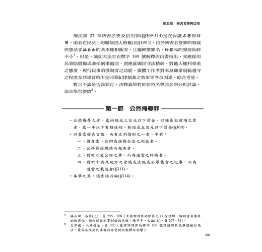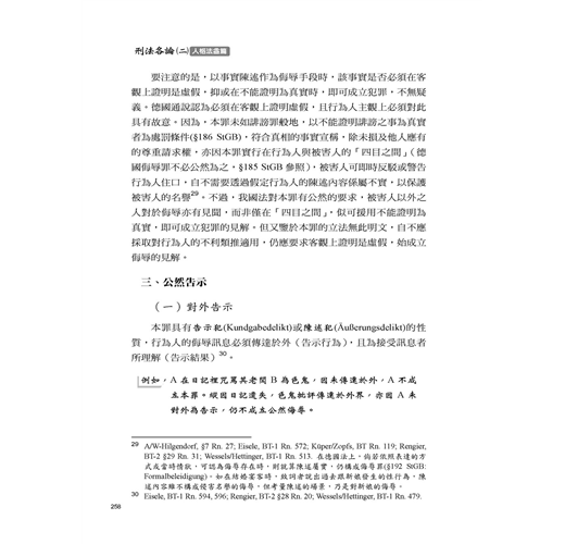 今年司法界的盛事,莫過於喧嚷數月之久的總統府司法改革國是會議,偶爾瀏覽相關新聞,常讓心情起伏許久,耽誤不少寶貴的寫作時光。以一個法學教育者的眼光來看,這場會議漏未討論的重要主題,就是作為改革基礎的知識。與我國法學習的對象德國相比,我國學界對諸多法律問題的述理明顯不足且常見凌亂,法律教學缺乏一定的章法,幾由各個授課老師自行其是;國家考試選拔人才標準不夠客觀;面臨層出不窮的個案,實務經常只能套用往例處理,或者見招拆招,難依法律價值進行合乎目的體系的論證,以致無法達到應有的法律適用可預測程度。不只實務與法學教育必須進行知識反省,作為司法品質源頭的立法,亦與法學知識密切相關,兩者間有著共榮共枯的關係。這部1935年在中國大陸公布的刑法,推測係由當時的國內法學鴻儒與國外顧問合作完成,縱有些許瑕疵,尚還呈現一定專家立法的水準,奠定往後刑法釋義學的發展基礎。其後在當局假藉各種動員戡亂名義主導下產生的「特別刑法」,罪刑失衡,概念體系混亂,成為學界在教學與研究的棄兒,勉強產生的實務解釋,亦是治絲益棼。近二十年來制定的與本書有關條文,如遺棄罪不罰事由(§294-1)、肇事逃逸罪(§185-4)、窺視竊聽竊錄罪(§315-1)等等條文,雖有呼應當代社會需求,卻有不少思慮欠周之處,以致出現不少無解難題。