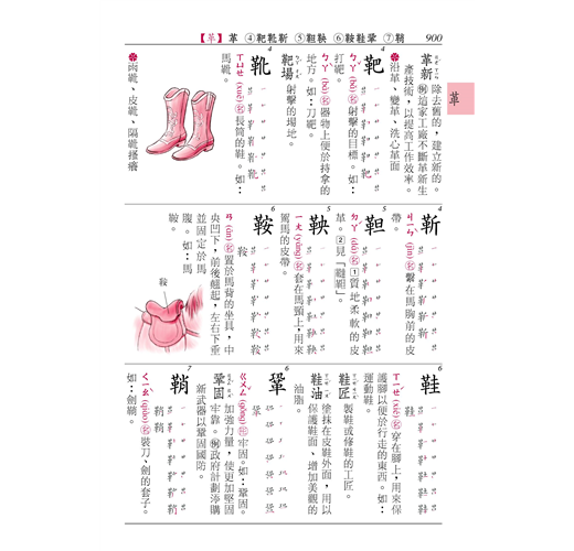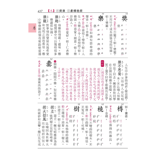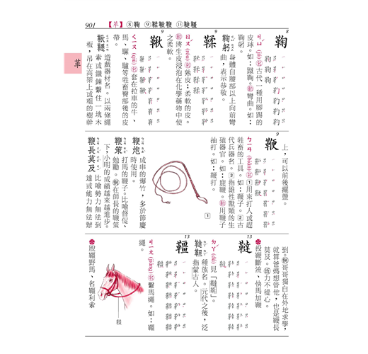 依教育部《一字多音審訂表》標示,由審音委員張孝裕教授親自校閱。單字附注漢語拼音,外語學習也可用。