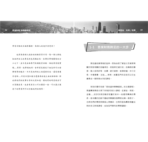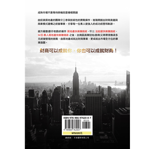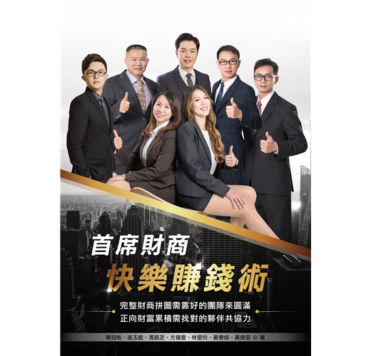 繼方耀慶(慶仔老師)的《房地產快樂賺錢術》著作,帶出《法拍屋快樂賺錢術》、《94狂-素人房地產快樂賺錢術》之後,台南區長陳冠佑(首席)又再帶領傳承多元經營管理的挑戰,由房地產成就出財商事業,更成就出市場全方位的事業版圖。