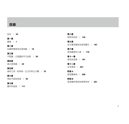 ◎附錄透視圖案例+透視圖的學習和教學建議,設定作業、學習與評量,內容約為大學一學期分量。
