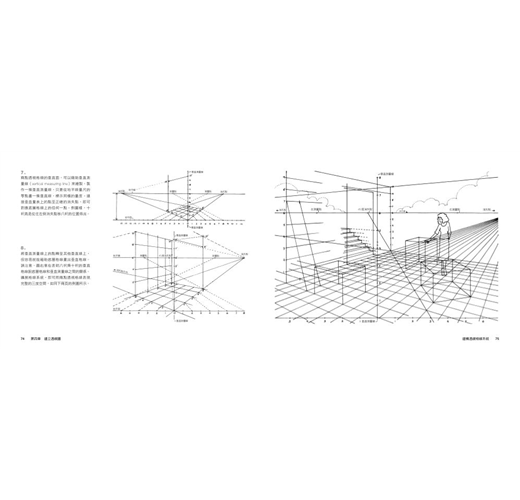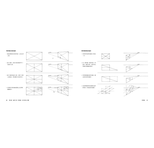 ◎清楚的步驟圖示範如何建構透視圖,每個步驟都有插圖說明,提供藝術家、插畫家、設計師和建築師一條可依循的路徑。
