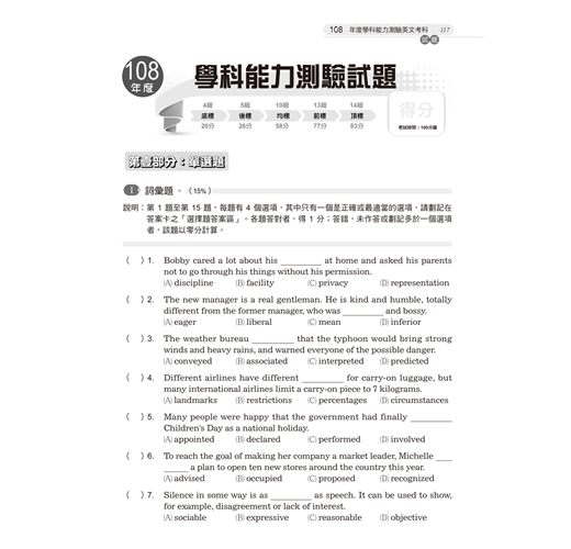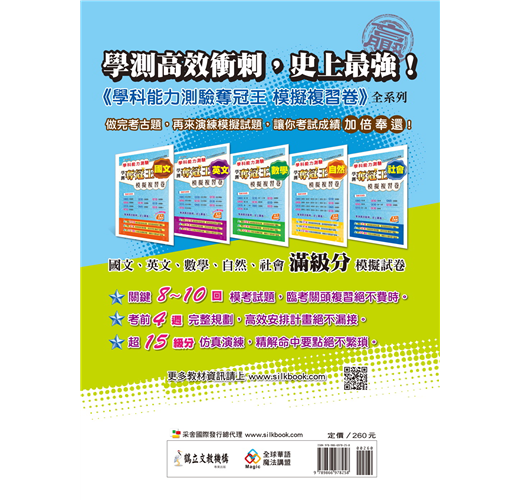 依據現今時事與最新命題方向,編修最新年度的模擬試題供同學自我檢測實力,讓即將上考場的各位考生們,立即掌握自身弱點與強項,衝刺最需補強之處。