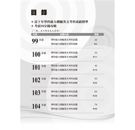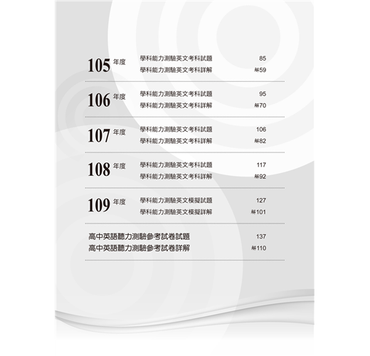 ◎英聽檢測 收錄大考中心公布高中英語聽力測驗參考試題,全面提升英聽實力。