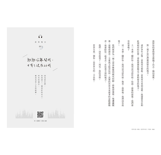 我也記得我在寫完上一本書的時候跟家人和朋友說過:「我應該很多年後才會再寫下一本吧,想再多沉澱幾年,想再多一些有趣的人生經歷。」然而,這一本,我還是決定在今年再次提筆。因為我想讓我的文字陪我一同成長,我想要你們跟我一起見證,見證我從薄弱走向日趨飽滿,見證我從無力到日漸強大。