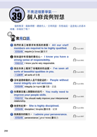 涵蓋常用會話:每小節有20~25個實用句子,並輔以「重要片語」、「片語解釋」和「相關表達」,幫助想大聊特聊的你,能更有效地吸收每一句會話。