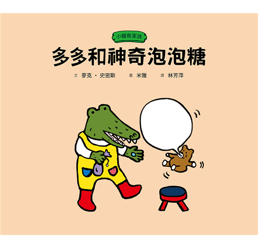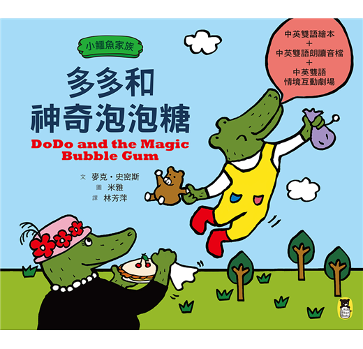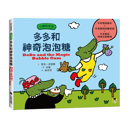 繼好聽好玩又能中英雙語學習的《小鱷魚家族:多多的生日》之後,美國詩人麥克.史密斯和臺灣畫家米雅再度合作,為小讀者帶來新作品《小鱷魚家族:多多和神奇泡泡糖》,故事中除了小讀者已經熟識且多才多藝的多多一家人,還介紹了一位新客人──他就是被傑克偷走鵝、金蛋和豎琴的巨人(大家想得起來出自什麼故事了嗎?)。