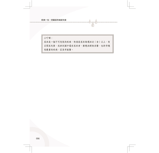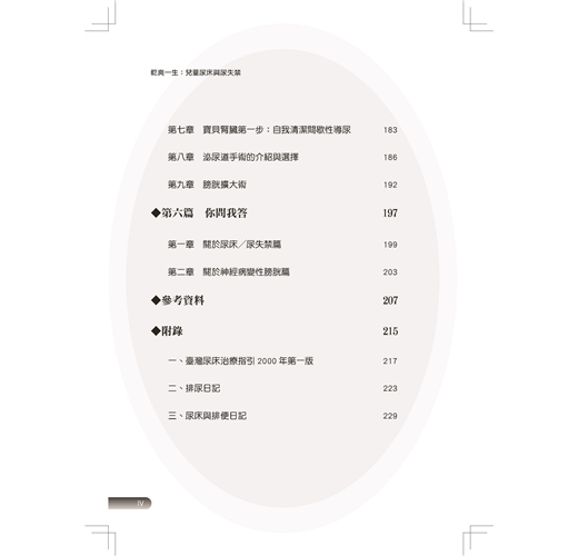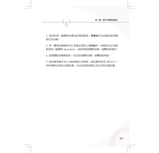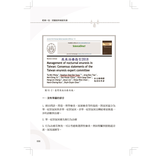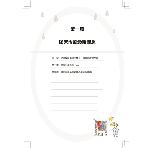 附錄「臺灣尿床治療指引」、「小便日記」、「尿床與排便日記」為治療尿床的重要參考與工具。
