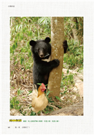 後來,在一場電影放映會前,遇到台灣黑熊保育協會執行長王嘯虎,提到南安小熊,我當場得意地秀出媽媽的小熊繪圖。嘯虎兄很興奮,馬上又傳來好幾張小熊的近況圖給我,每張都相當清楚。我隨即傳給媽媽看,讓她知道,小熊最近又如何了。結果一星期後,我回家,媽媽在餐桌上擺了小熊吃果物、小熊陪公雞、小熊在爬樹等等圖畫,得意地展示。