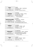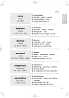 1 練!mini test 加強單字熟悉度,光看不練轉身忘書中每五章區分為一個段落,將前面所列之字彙編整成 25 道題目(同義字理解題),全書共收錄 250 題。跟著本書編排一路練習下來,再接上小測驗,馬上瞭解各字如何運用,單字也變得較容易吸收。