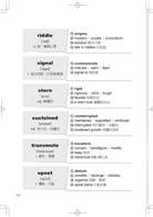 ◎ 不可輕忽!! 搭配詞也是一個「狠角色」!!雖然本書的主角是「考試替換字」和「同義字」,但匯整出的「搭配詞」亦十分重要。尤其針對於考試中,理解題意和一秒識破答案的真義,具有如虎添翼的助益。
